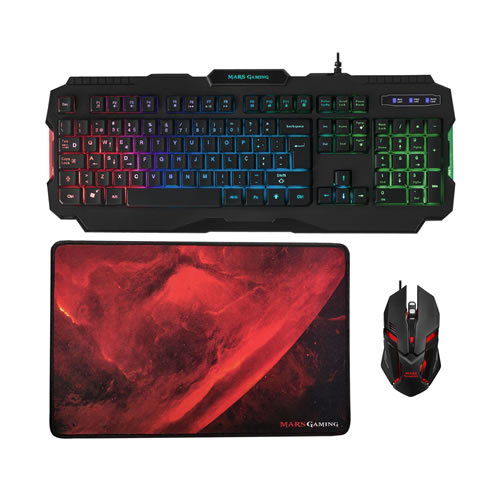 Combo MARS GAMING 3em1 - Teclado+Rato+Tapete Rato